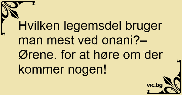 Hvilken legemsdel bruger man mest ved onani?– Ørene. for at høre om der kommer nogen!