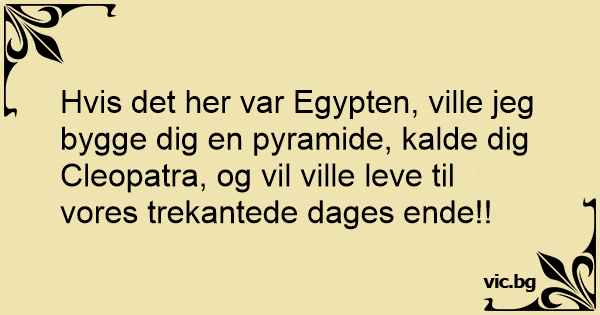 Hvis det her var Egypten, ville jeg bygge dig en pyramide, kalde dig Cleopatra, og vil ville leve til vores trekantede dages ende!!