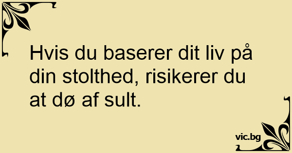 Hvis du baserer dit liv på din stolthed, risikerer du at dø af sult.