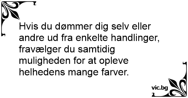Hvis du dømmer dig selv eller andre ud fra enkelte handlinger, fravælger du samtidig muligheden for at opleve helhedens mange farver.