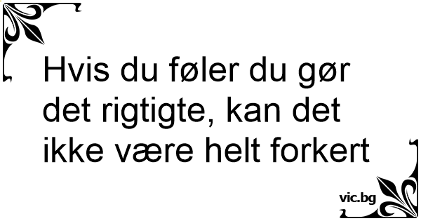 Hvis du føler du gør det rigtigte, kan det ikke være helt forkert