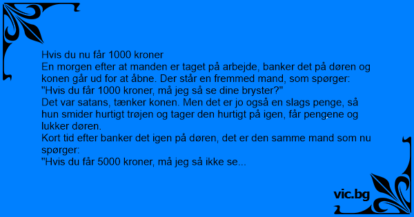"Ja, det kan jo godt være at det er lige i overkanten, men hvis du får 10000 kroner, kan jeg så ikke få et hurtigt knald?"