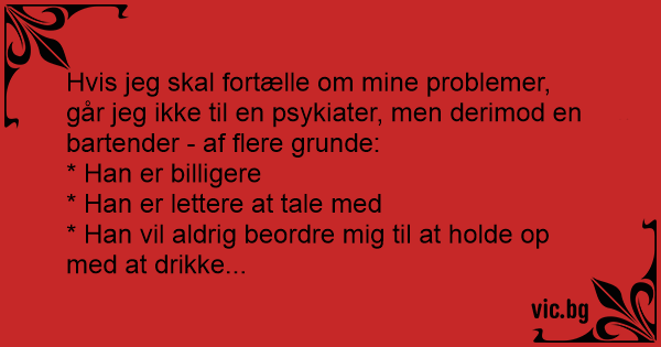 Hvis jeg skal fortælle om mine problemer, går jeg ikke til en psykiater, men derimod en bartender - af flere grunde: