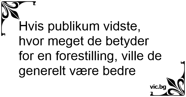 Hvis publikum vidste, hvor meget de betyder for en forestilling, ville de generelt være bedre
