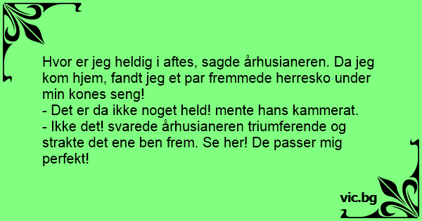 Hvor er jeg heldig i aftes, sagde århusianeren. Da jeg kom hjem, fandt jeg et par fremmede herresko under min kones seng!