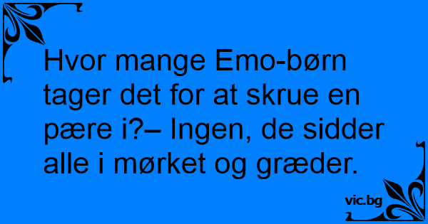 Hvor mange Emo-børn tager det for at skrue en pære i?– Ingen, de sidder alle i mørket og græder.