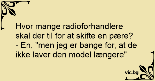 Hvor mange radioforhandlere skal der til for at skifte en pære?