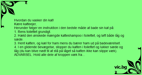 Herunder følger en instruktion i den bedste måde at bade sin kat på: