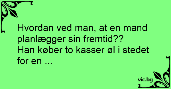 Hvordan kan du se at mannen planlegger for framtiden? Svar: Han kjøper to kasser med øl istedet for én.