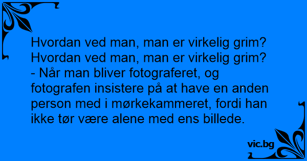 - Når man bliver fotograferet, og fotografen insistere på at have en anden person med i mørkekammeret, fordi han ikke tør være alene med ens billede.