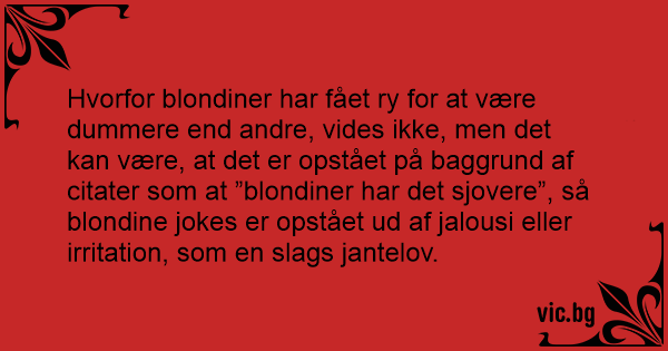Hvorfor blondiner har fået ry for at være dummere end andre, vides ikke, men det kan være, at det er opstået på baggrund af citater som at ”blondiner har det sjovere”, så blondine jokes er opstået ud af jalousi eller irritation, som en slags jantelov.