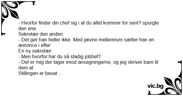 - Hvorfor finder din chef sig i at du altid kommer for sent? spurgte den ene