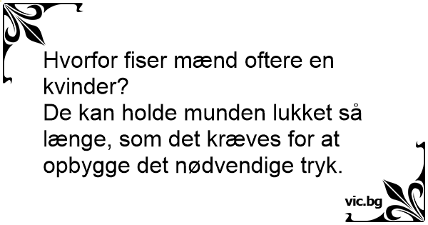 - Varför fjärtar män mer än kvinnor? - För att kvinnor inte håller tyst länge nog för att bygga upp ett tryck.