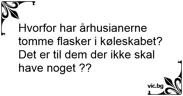 Et ægtepar er ved at forberede en fest. Manden ser, at konen er ved at sætte nogle tomme flasker ind i køleskabet: "Hvorfor stiller du tomme flasker ind?", spurgte han. "Du siger jo altid, at din...