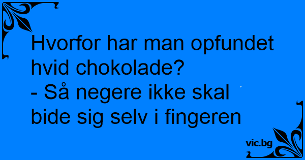 – Varför säljs så mycket vit choklad i Afrika? – För att de inte skall bita sig i fingrarna.