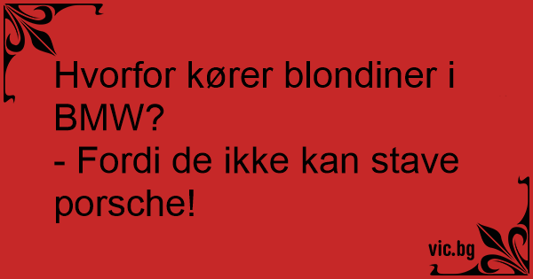 – Hvorfor kjører alle blondiner BMW? – De kan ikke stave Porsche.