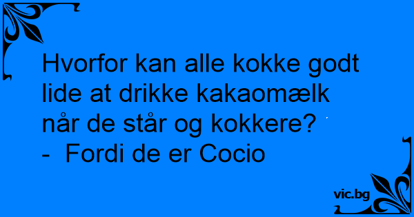 Hvorfor kan alle kokke godt lide at drikke kakaomælk når de står og kokkere?
