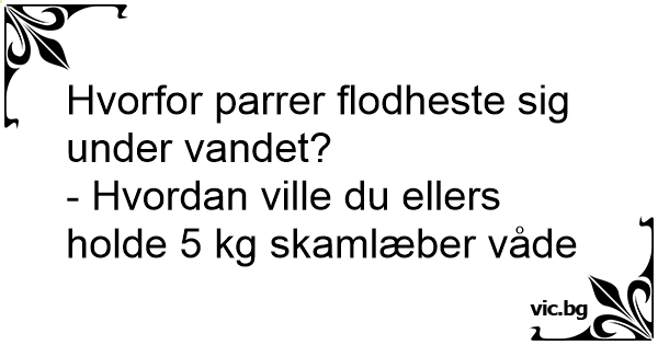 Hvorfor har flodhester sex under vann? - Hvordan skal man ellers få ei fitte på et tonn til å bli våt? Защо хипопотамите правят секс под вода? - Как иначе да накараш една п*утка от един тон да се намокри? Waarom heeft een nijlpaard altijd seks onder water? Probeer maar eens 7 kilo kut nat te maken boven water