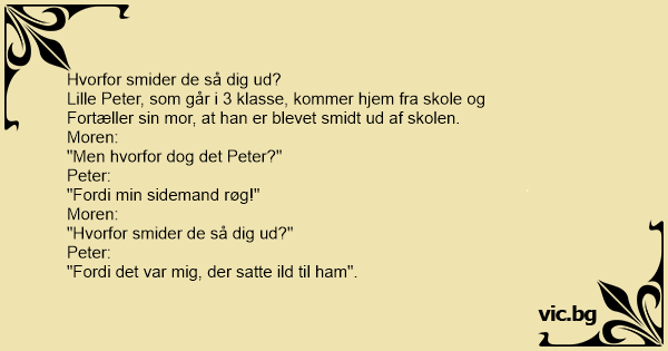 Lille Peter, som går i 3 klasse, kommer hjem fra skole og