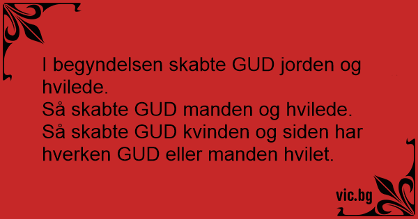 Så skabte GUD kvinden og siden har hverken GUD eller manden hvilet.