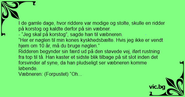 “Her er nøglen til min kones kyskhedsbælte. Hvis jeg ikke er vendt hjem om 10 år, må du bruge nøglen.”