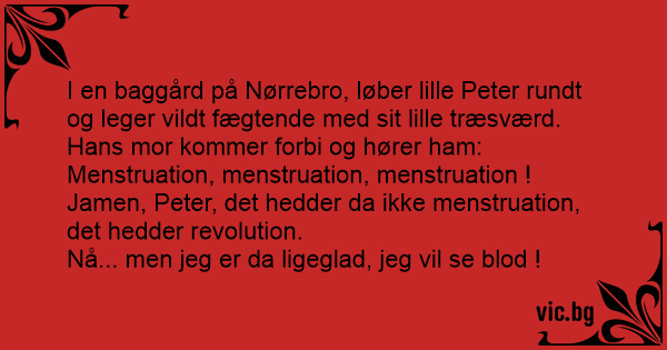 Jamen, Peter, det hedder da ikke меnsтruатiоn, det hedder revolution.