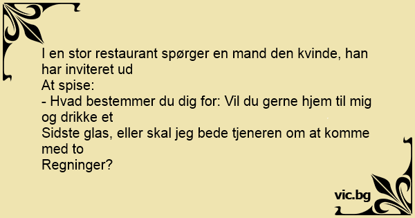 - Hvad bestemmer du dig for: Vil du gerne hjem til mig og drikke et
