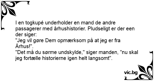 I en togkupé underholder en mand de andre passagerer med århushistorier. Pludseligt er der een der siger: