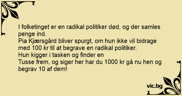 Pia Kjærsgård bliver spurgt, om hun ikke vil bidrage med 100 kr til at begrave en radikal politiker.