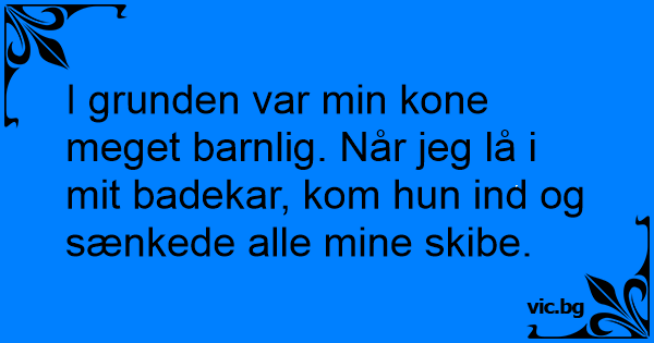 Meine Frau ist mit 40 noch so kindisch! Ein Ostfriese klagt seinem Psychiater: "Meine Frau wird von Tag zu Tag kindischer. Gestern, als ich in der Badewanne saß, hat sie alle meine Papierschiffchen versenkt!" Kolega do Jasia: - Dlaczego rozwiodłeś się z Małgosią? - Bo była zbyt dziecinna. - A dlaczego tak sądzisz? - Bo za każdym razem, gdy się kąpałem, to ona wchodziła i zatapiała moje stateczki. Min fru var ganska barnslig. Jag kunde ligga i badet när hon plötsligt kom in och sänkte mina båtar. - Alors, tu as fini par divorcer ? - Oui ! Elle était trop gamine… A chaque fois que je prenais un bain, elle arrivait par derrière et elle me coulait tous mes bateaux !