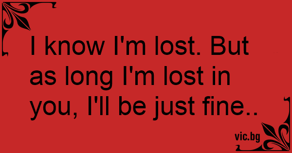 I know I'm lost. But as long I'm lost in you, I'll be just fine..