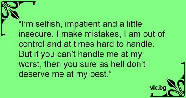 “I’m selfish, impatient and a little insecure. I make mistakes, I am out of control and at times hard to handle. But if you can’t handle me at my worst, then you sure as hеll don’t deserve me at my best.”