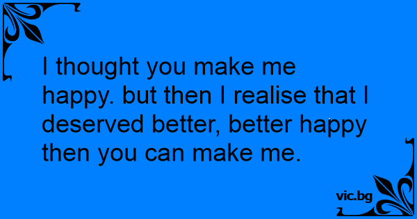 I thought you make me happy. but then I realise that I deserved better, better happy then you can make me.