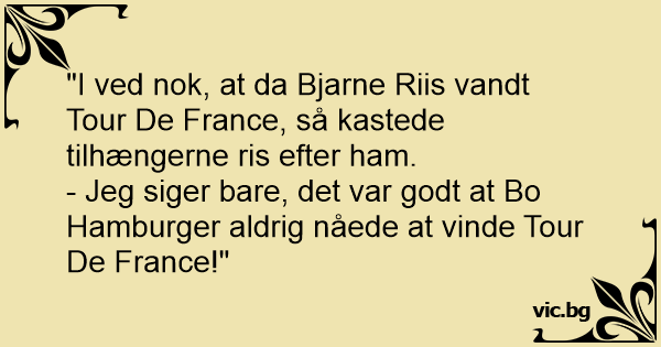 - Jeg siger bare, det var godt at Bo Hamburger aldrig nåede at vinde Tour De France!"