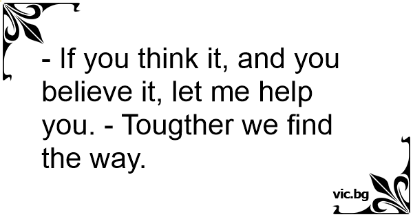 - If you think it, and you believe it, let me help you. - Tougther we find the way.