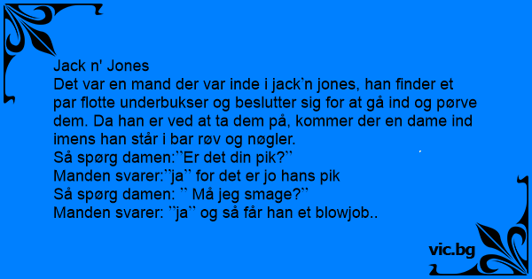 Det var en mand der var inde i jackn jones, han finder et par flotte underbukser og beslutter sig for at gå ind og pørve dem. Da han er ved at ta dem på, kommer der en dame ind imens han står i bar røv og nøgler.