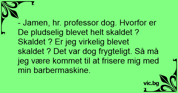 - Jamen, hr. professor dog. Hvorfor er De pludselig blevet helt skaldet ?