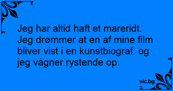 Jeg har altid haft et mareridt. Jeg drømmer at en af mine film bliver vist i en kunstbiograf. og jeg vågner rystende op.
