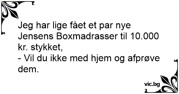 Jeg har lige fået et par nye Jensens Boxmadrasser til 10.000 kr. stykket,