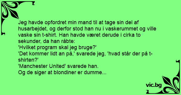 Jeg havde opfordret min mand til at tage sin del af husarbejdet, og derfor stod han nu i vaskerummet og ville vaske sin t-shirt. Han havde været derude i cirka to sekunder, da han råbte: