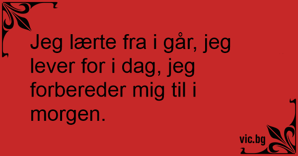 Jeg lærte fra i går, jeg lever for i dag, jeg forbereder mig til i morgen.