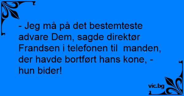 - Jeg må på det bestemteste advare Dem, sagde direktør Frandsen i telefonen til manden, der havde bortført hans kone, - hun bider!