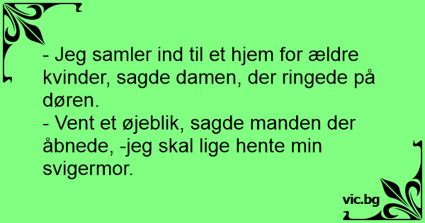 Det ringer på dörren. - Hej, jag har en insamling till ett äldreboende. - Vänta lite, du kan få min svärmor med detsamma