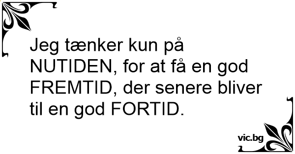 Jeg tænker kun på NUTIDEN, for at få en god FREMTID, der senere bliver til en god FORTID.