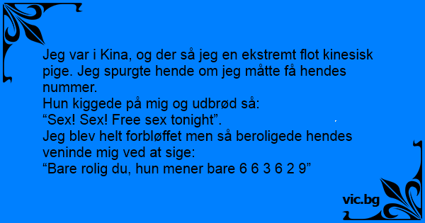 Jeg var i Kina, og der så jeg en ekstremt flot kinesisk pige. Jeg spurgte hende om jeg måtte få hendes nummer.