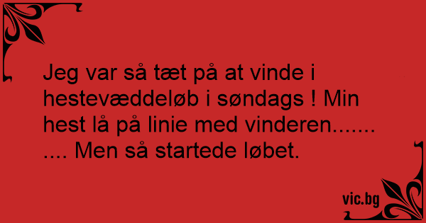 Jeg var så tæt på at vinde i hestevæddeløb i søndags ! Min hest lå på linie med vinderen.......