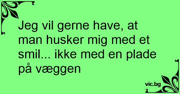 Jeg vil gerne have, at man husker mig med et smil... ikke med en plade på væggen