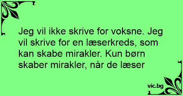 Jeg vil ikke skrive for voksne. Jeg vil skrive for en læserkreds, som kan skabe mirakler. Kun børn skaber mirakler, når de læser