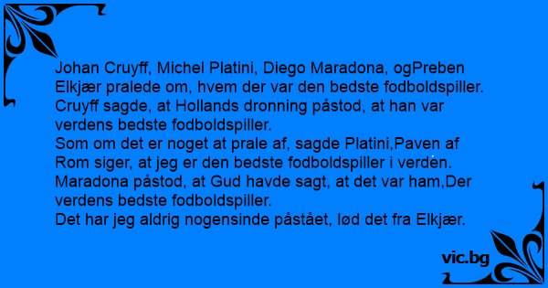 Johan Cruyff, Michel Platini, Diego Maradona, ogPreben Elkjær pralede om, hvem der var den bedste fodboldspiller.
