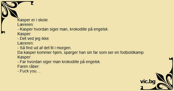 - Mor ved du hvordan man siger krokodille på engelsk.